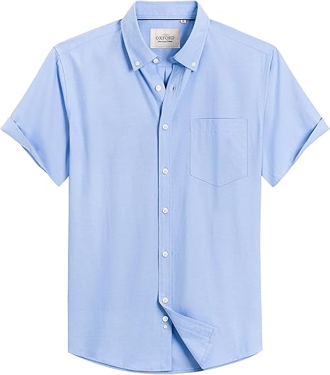 Men's Short Sleeve Oxford Shirt Regular Fit Button Down Collar Shirts with Pocket