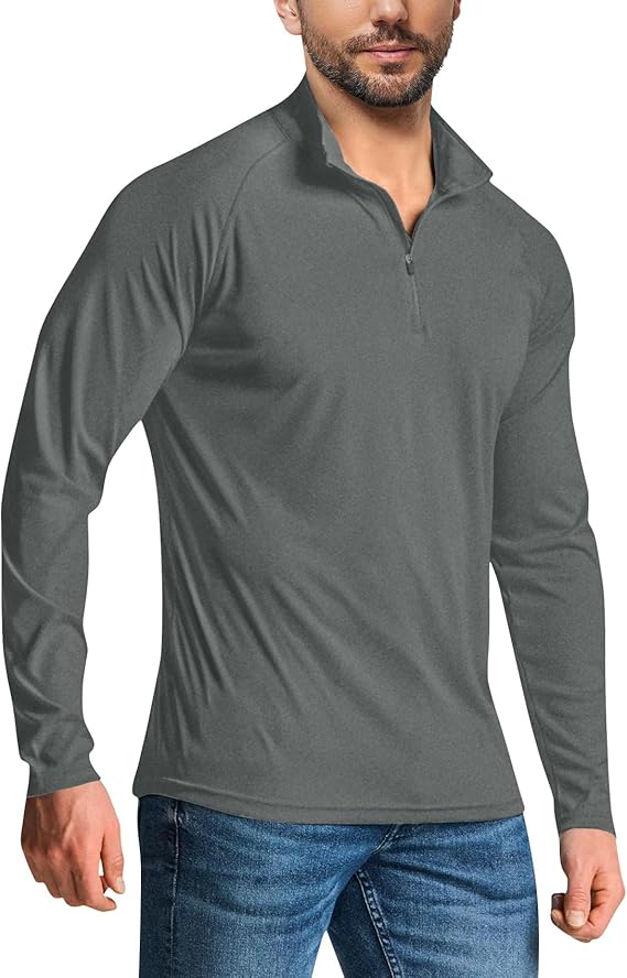 Mens Quarter Zip Pullover Shirt Long Sleeve Golf Sweatshirt Mock Neck 1/4 Zipper Athletic Workout Running Polo Tops
