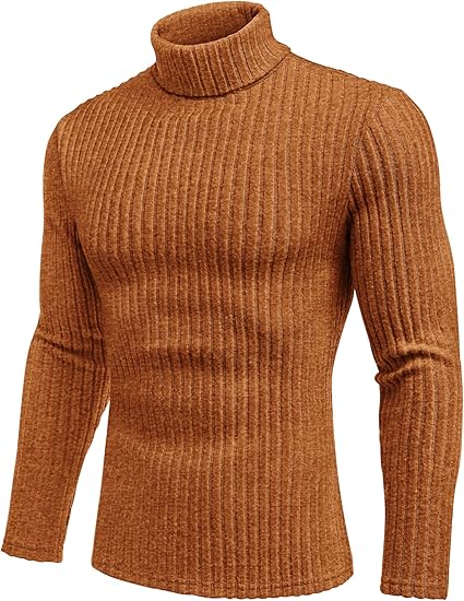 Men Turtleneck Shirts Lightweight Long Sleeve T Shirt Ribbed Thermal Tops Baselayer Pullover S-XXL