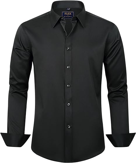 Men's Dress Shirts Long Sleeve Wrinkle-Free Stretch Shirts Solid Formal Button Down Shirt with Pocket