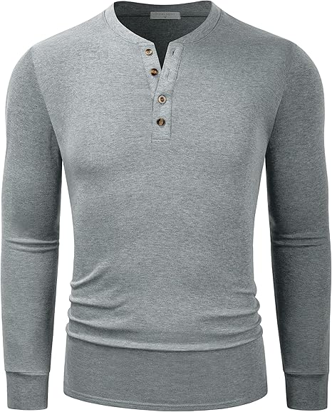 Mens Henley Long/Short Sleeve T-Shirt Cotton Casual Shirt