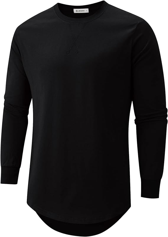 Mens 100 Cotton Hipster Hip Hop Longline Crewneck T-Shirt Pre - Shrunk S-4XL