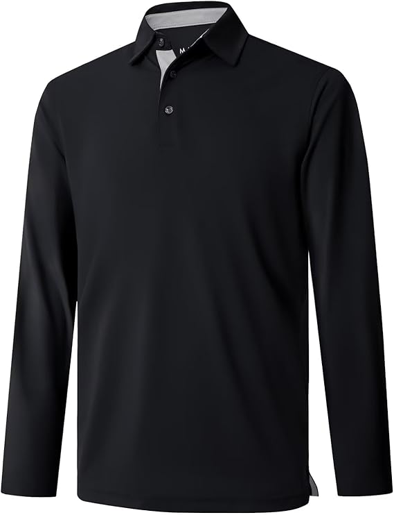 Mens Golf Shirt Short and Long Sleeve Moisture Wicking Dry Fit Performance Solid Casual Pique Golf Polo Shirts for Men