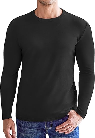 Mens Long Sleeve Shirts Crew Neck Fleece Thermal Undershirts Midweight Sweatshirts Soft Base Layer Pullover Tee Tops