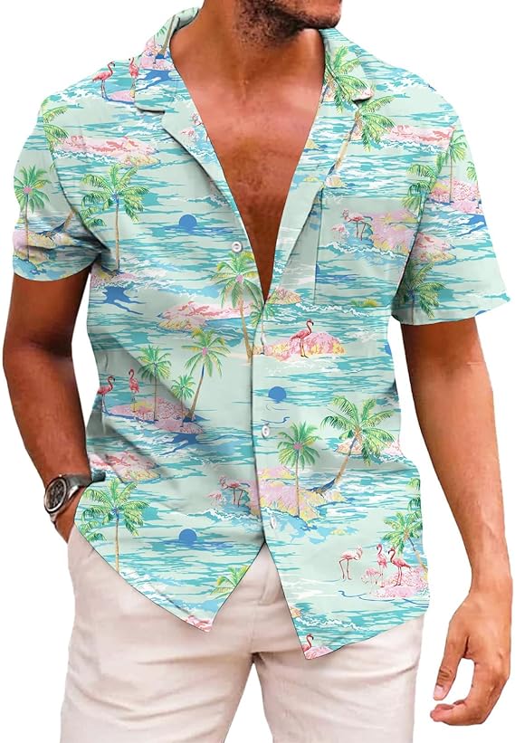 Funky Hawaiian Shirt for Men Palm Beach Shirts Tropical Vacation Shirts