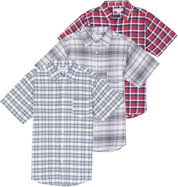 3 Pack: Men's Regular-Fit Short Sleeve Woven Button Down Shirt with Pocket (Available in Big & Tall)